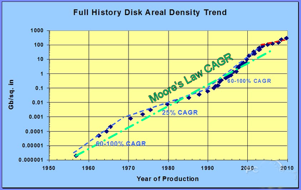 至于HDD,在2000年后,发展速度明显减缓了
