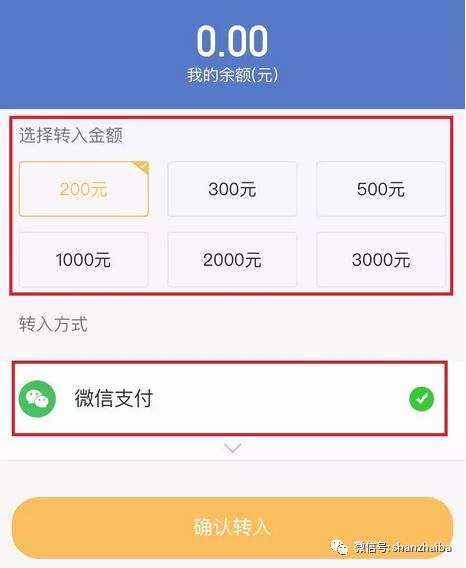 3、选择充值金额使用微信支付(零钱)