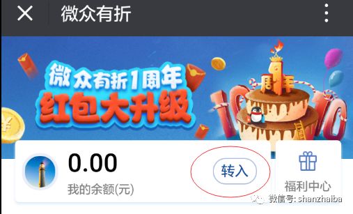 2、“微众有折”公众号菜单栏-我的有折-转入